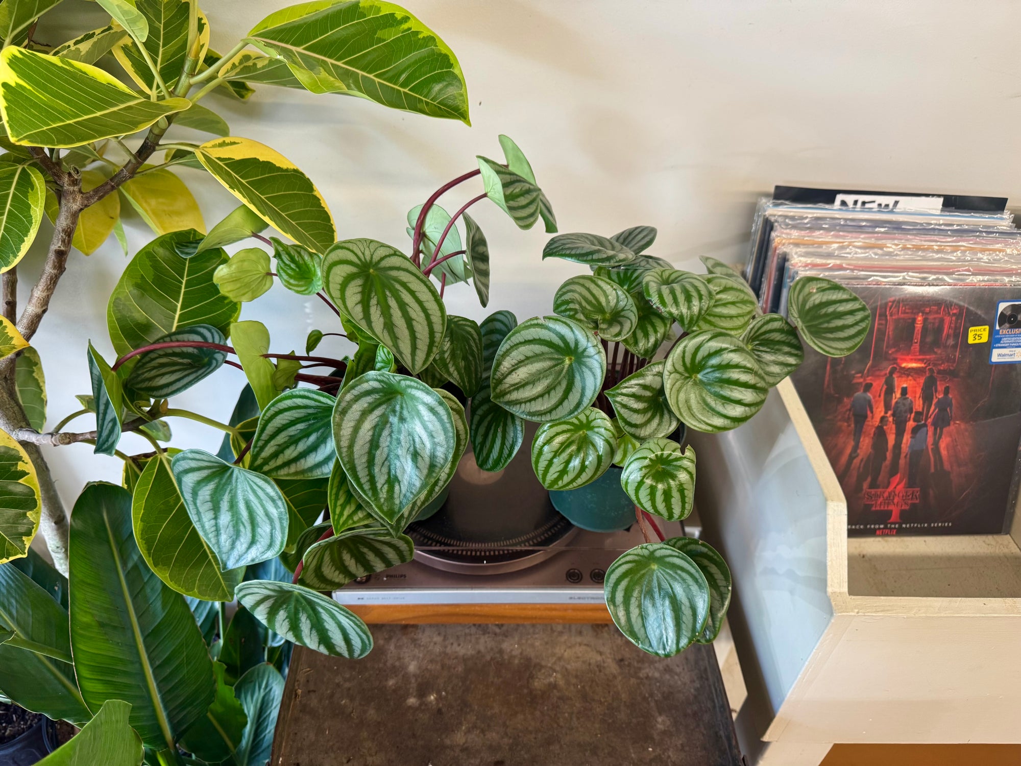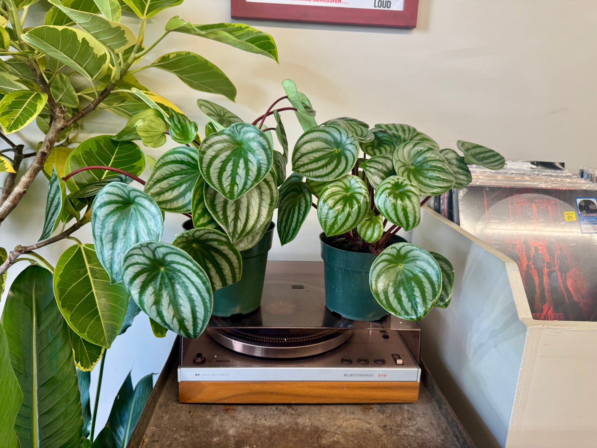 What better way to welcome this warm weather than with some juicy watermelon…watermelon peperomia, that is! These peperomia are as delightful as can be. They are a wonderful option for any plant lover, with their thick leaves, red stems, and easy going care. Peperomia Watermelon do bring blooms however the real reason we love them is for their watermelon shaped, shimmery leaves!