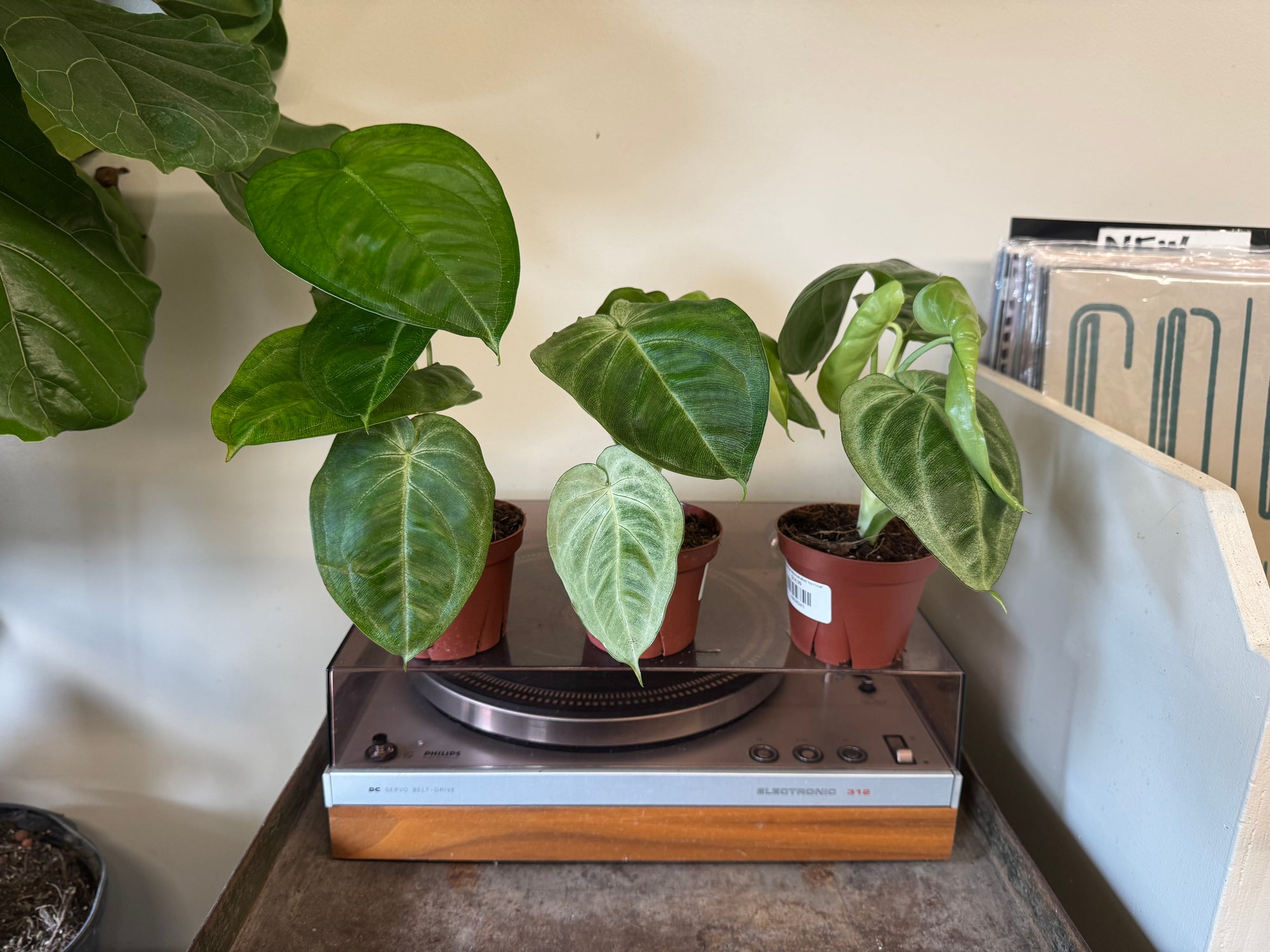 Syngonium Macrophyllum aka Frosted Hearts aka Ice Frost is a harder to find, rarer plant that brings thick leathery leaves that mimic the shape of a heart, and a perfect mix between muted greens and silvery hues. Like other syngonium, these hearts will either climb a moss or totem pole, or eventually send off long runners and trail. Either way you have it, the growth habit is gorgeous!