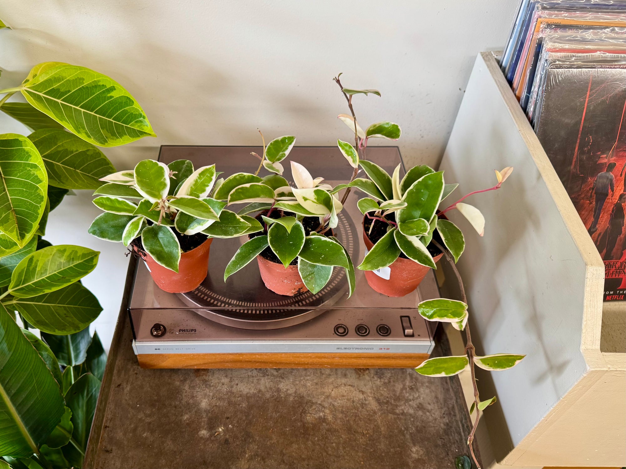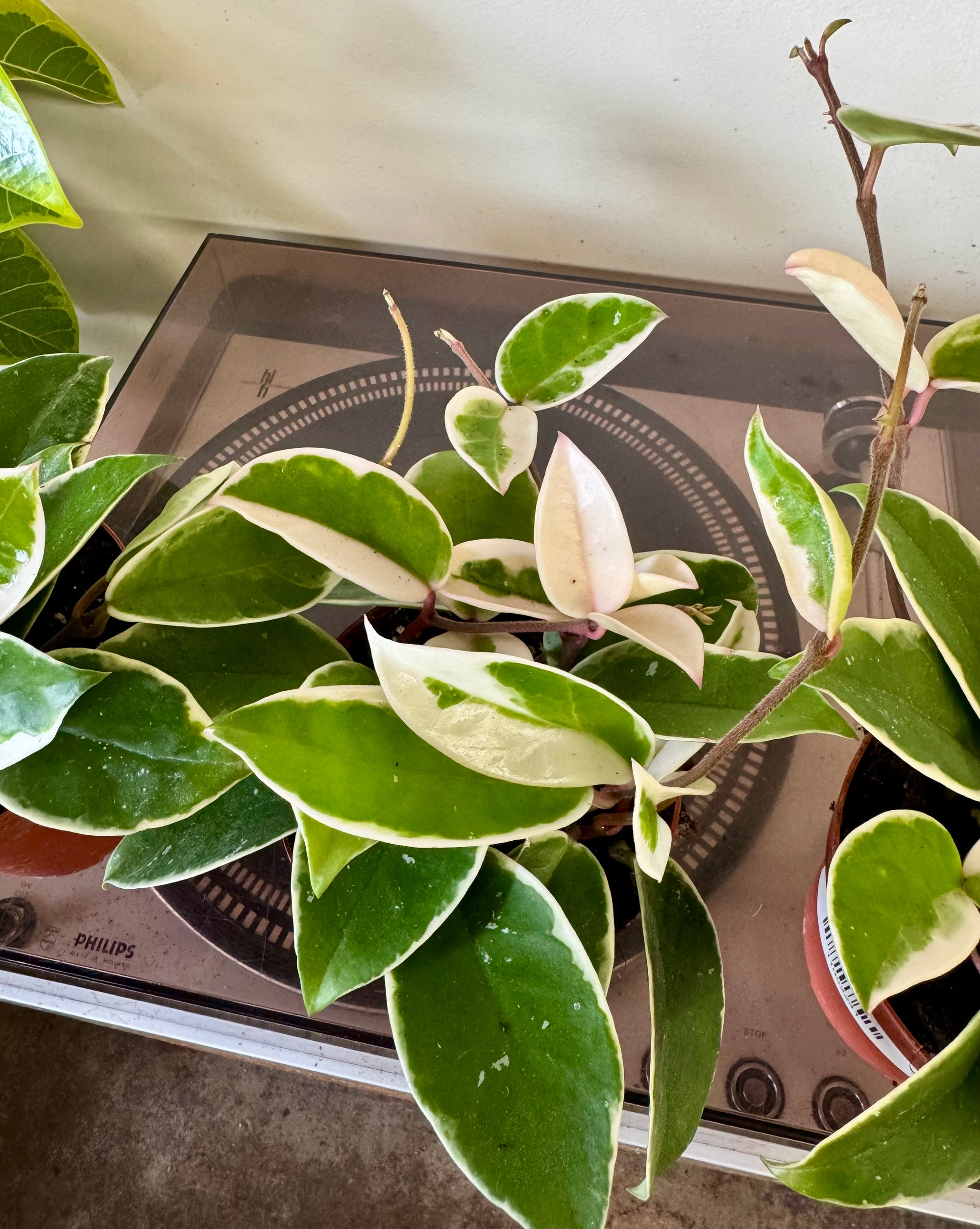 We bring you her royal majesty, the Hoya Queen ✌🏼♥️🫅 Coming in 4” pots, these queens are showing off their stunning mixes of colors, ranging between greens, whites, and pinks. In high light the plants will bring more pink hues and we recommend watering only when the soil is mostly dried or the leaves have a soft give to them. Queens’ bloom clusters of star shaped pinkish flowers that smell similarly to a vanilla chocolate 🍫 They’re great for the beginner plant lovers or those just starting to dip their toes into the Hoya world, but also stunning enough for the Hoya expert who wants a tried and true plant 🙌