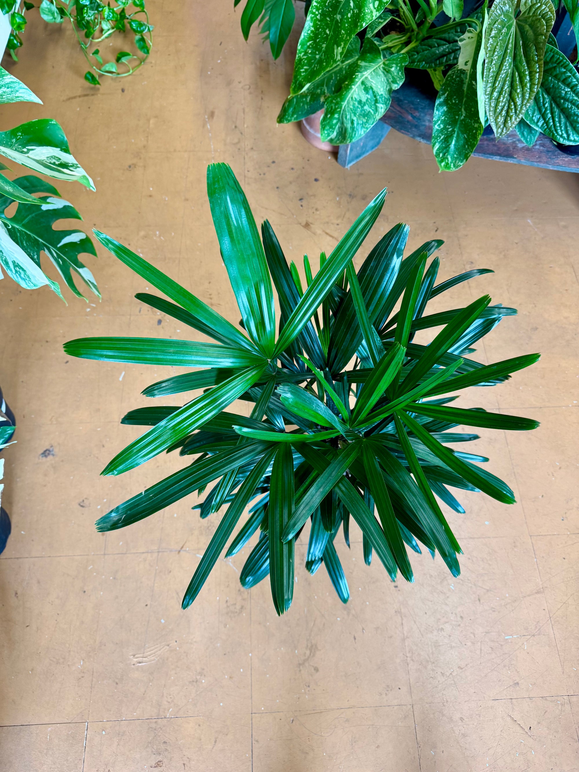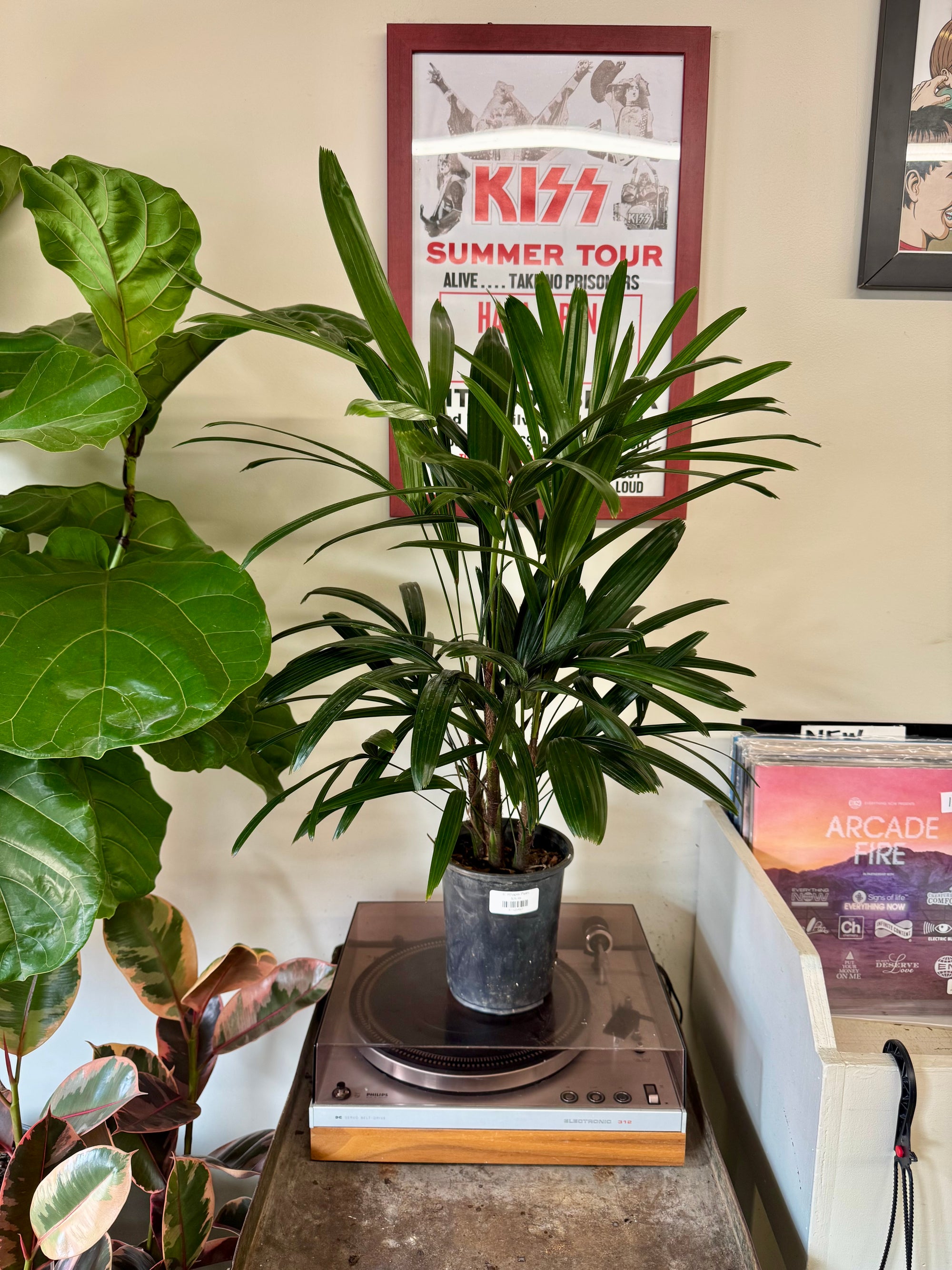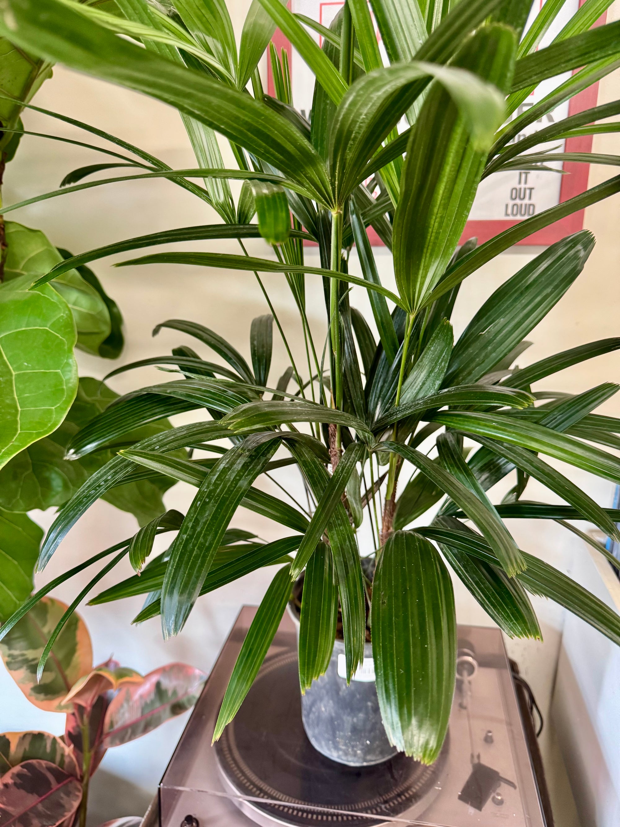 One of our absolute favorites! Rhapis Palms are a total vibe. Their leaves are big, thick, and have the coolest fan shape which makes them full and lush! They grow tall and slender, meaning they don’t take up much space physically while still bringing a lot of attention their way.