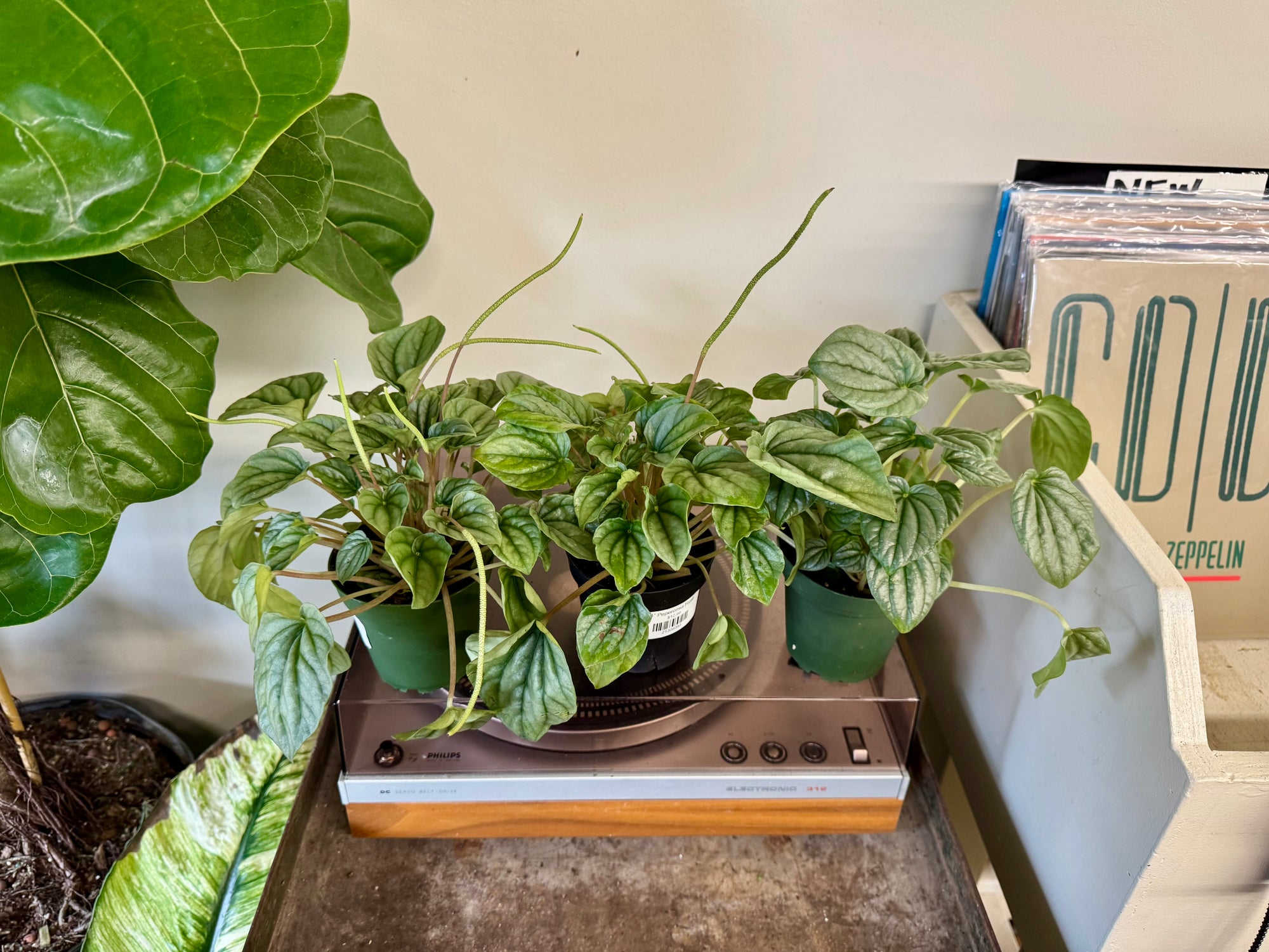 What a perfect plant for our season change into colder months! Peperomia Frost are well known for their minty green-silver coloring, deep veining, and cute ripples. Their leaves do grow to be about palm sized, and they push out the weirdest vertical blooms twice yearly. These pots are all healthy but do have some discoloration.