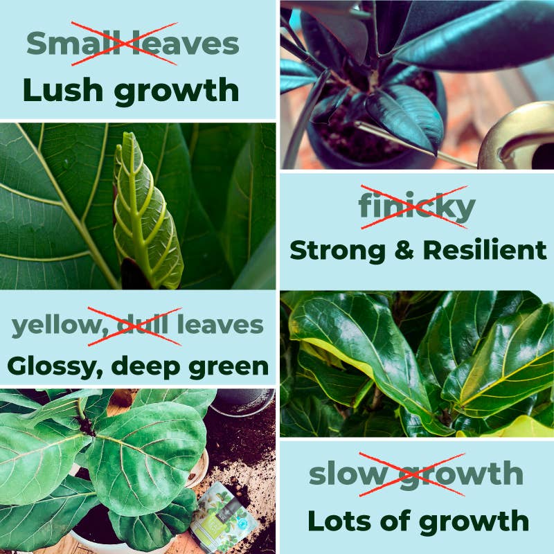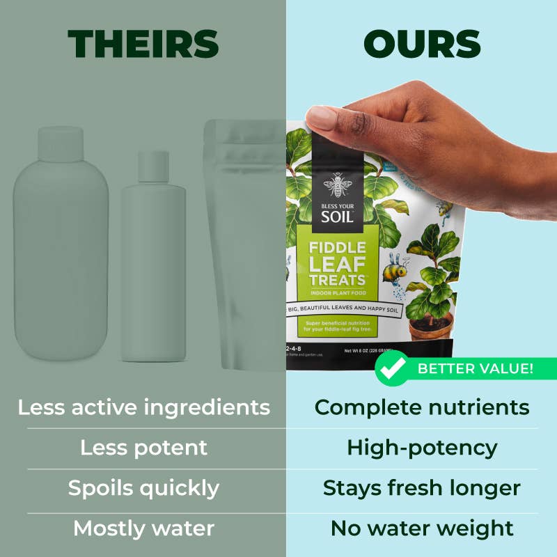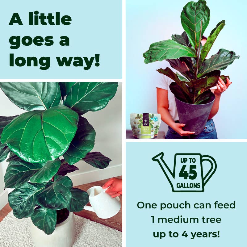 Whether you are reviving struggling trees or maintaining healthy ones, Fiddle Leaf Treats is the perfect solution to support any ficus variety and enrich their soil. Easy to use and long-lasting, it offers more active nutrients than liquid fertilizers or spikes, providing vibrant, consistent growth with every application.