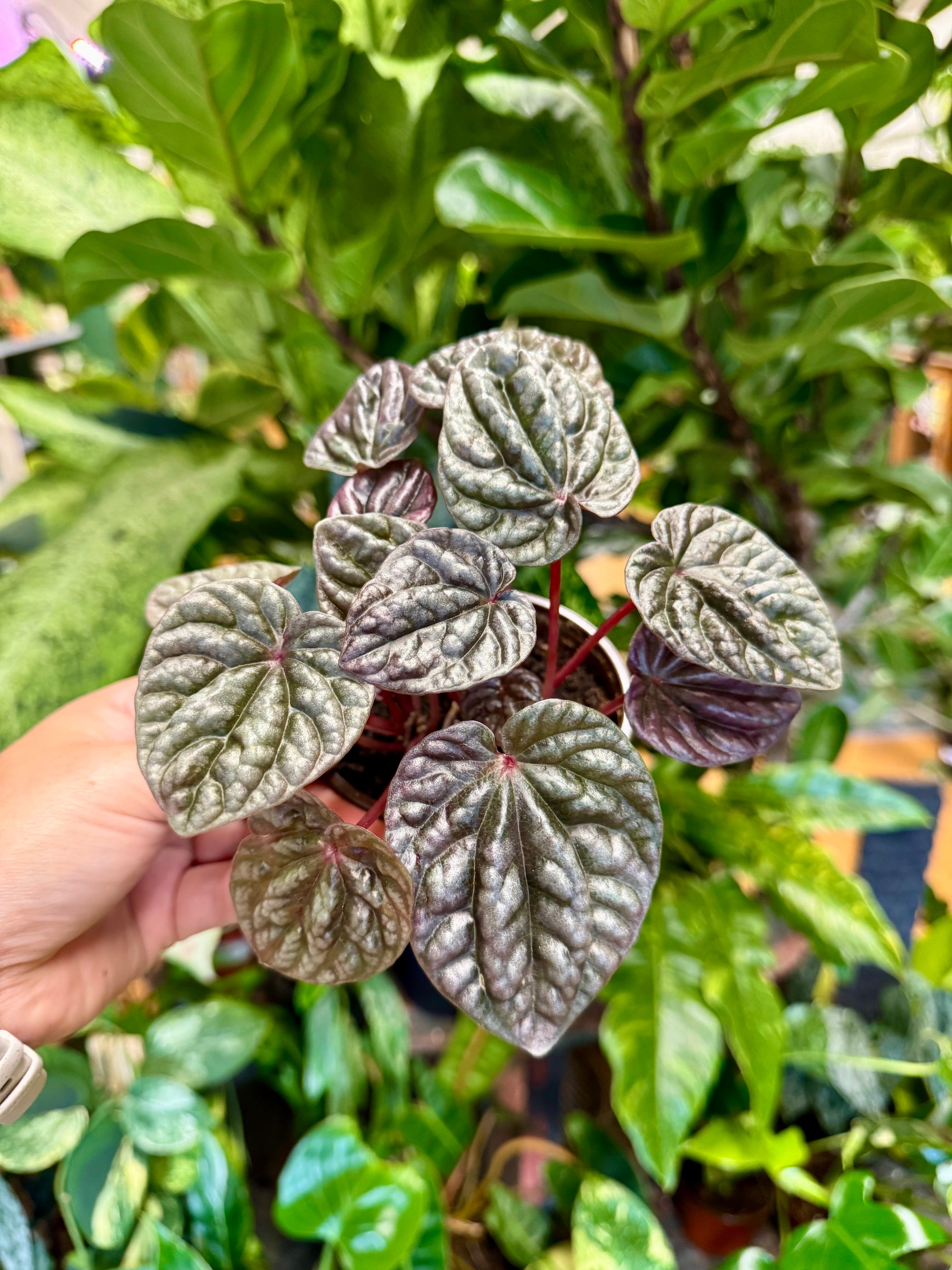 Peperomia ‘Emerald’ have the deepest ripples and most stunning colors ranging silvers to maroons to purples. They are a great option for beginner plant lovers! We adore that each leaf is unique with their own colors, and are obsessed with their weirdo vertical white blooms that come during spring and fall months. These pots are considered rehab status, please understand they’ll need good light and consistent watering but should make a come back in no time.