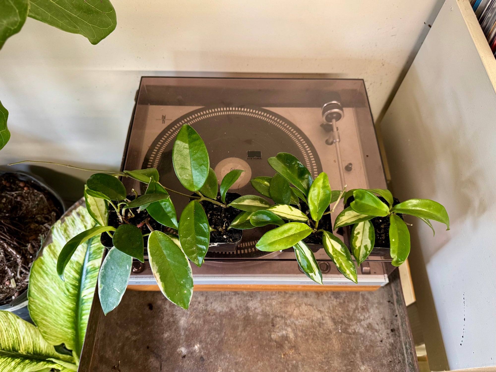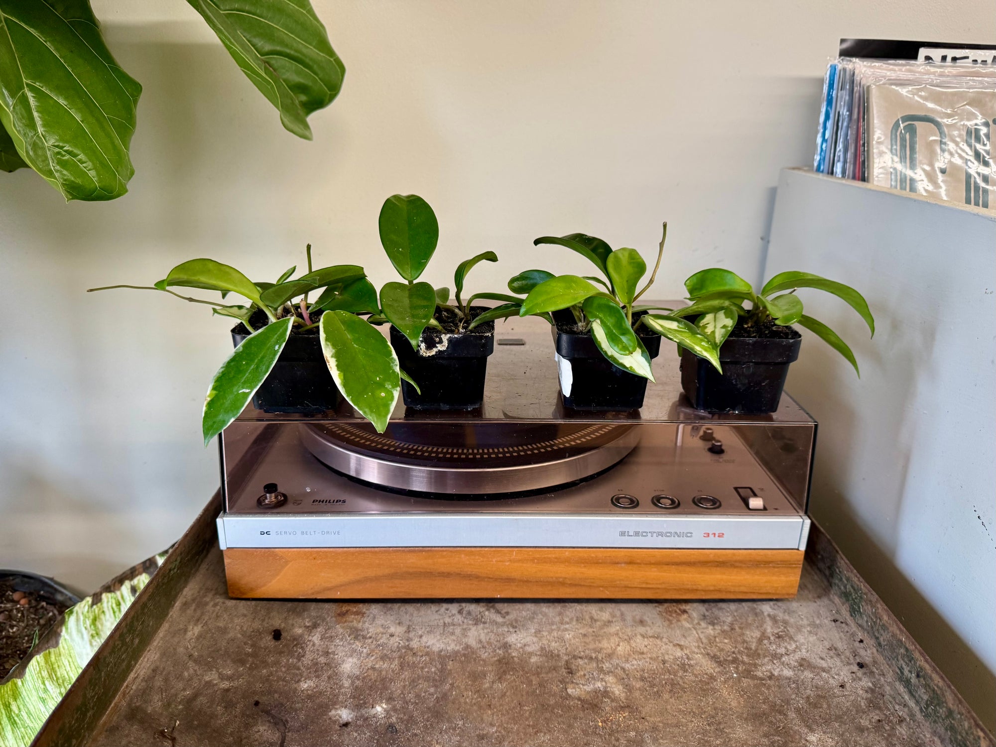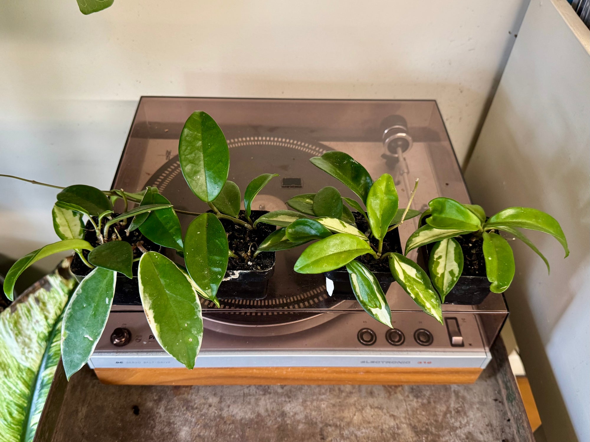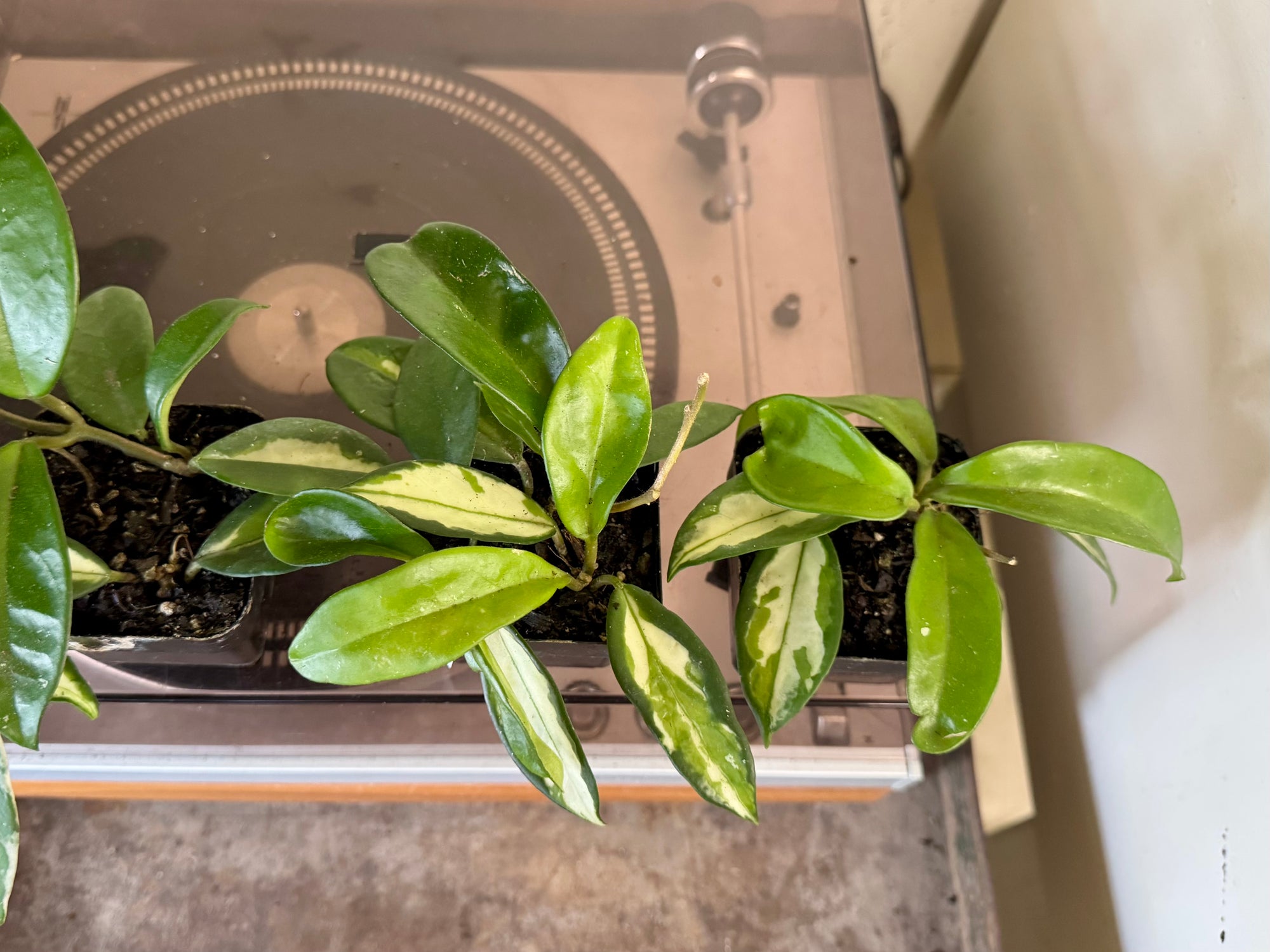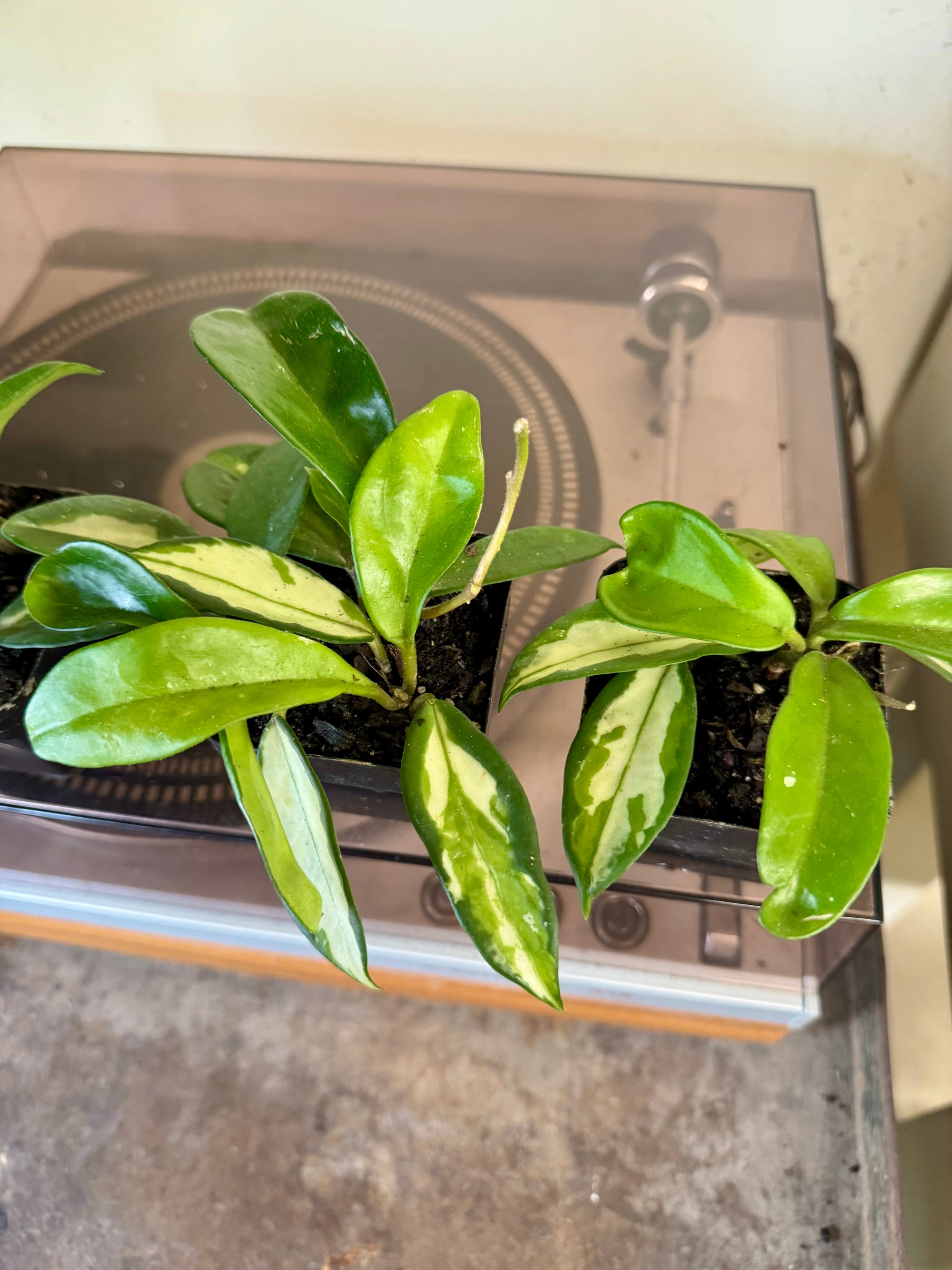 Hoya Carnosa Princess are truly glamorous and a tried and true variety. They’re also known as Hoya tricolor for their range in colors between whites, pinks, and greens. Princess have a sweet smelling bloom ranging between vanilla and honey. These pots will trail eventually and can be placed on a trellis if preferred.